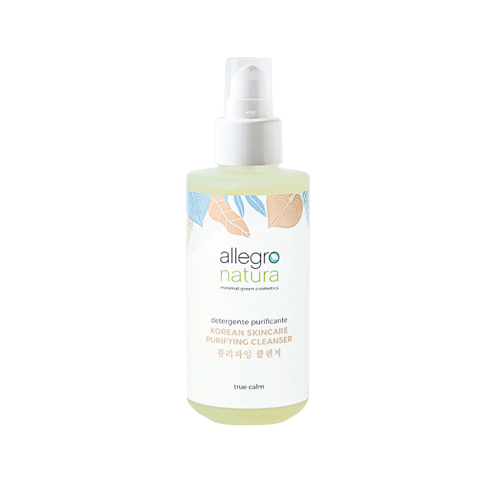 O Cleanser Purificante Allegro Natura, é um produto de limpeza de rosto delicado enriquecido com Clean Saver, um complexo de plantas medicinais com propriedades antioxidantes, anti-inflamatórias e antibacterianas, com notas orientais, revitaliza e rejuvenesce a pele. Contém também água de kiwi biológica, True Calm e Zinc PCA para uma sensação de frescura e suavidade, enquanto limpa e regenera a pele. Ideal para peles oleosas, ajudando a remover eficazmente as impurezas e o excesso de sebo, prevenindo a formação de acne e pontos negros. O Cleanser Purificante limpa sem irritar a pele, ajuda a reduzir a inflamação e fornece uma dose extra de hidratação e frescura.